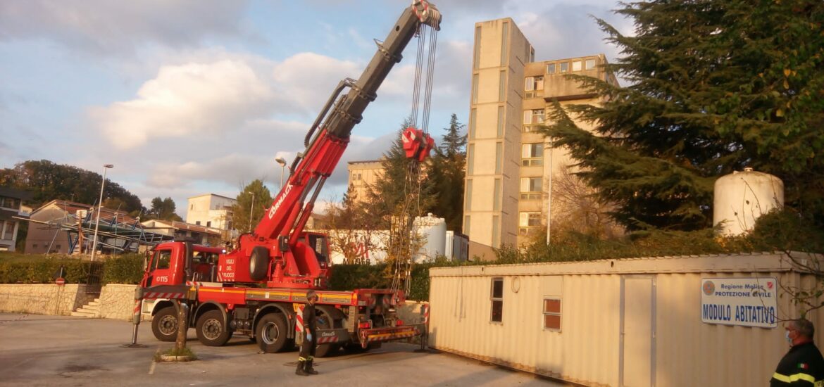 Per esigenze relative all’emergenza epidemiologica in corso un modulo abitativo della Protezione Civile della Regione Molise, è stato spostato, ad opera dei Vigili del fuoco, dal territorio di Sant’Agapito al piazzale esterno dell’ospedale di Isernia ed è ora a disposizione dell’Azienda Sanitaria Regionale del Molise.
