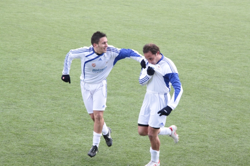 Pasquale Di Lullo (nella foto con Aquaro), centrocampista classe ’90, ha raggiunto l’accordo con la società dell’Olympia Agnonese. Nella stagione 2014-2015, vestirà ancora granata. Nello scorso campionato, dopo aver iniziato la stagione con il Bojano, Di Lullo si è trasferito ad Agnone dove ha collezionato 18 presenze contribuendo alla salvezza della squadra allenata da Corrado Urbano. Nel frattempo continuano le trattative per reperire un attaccante che sappia dare garanzie al reparto avanzato. Due i nomi su tutti: Roberto Aquaro (nella foto), classe ’84, l’anno scorso 32 presenze e 19 gol con la maglia del Celano e Mario La Cava, classe ’81, la passata stagione in forza al Torrecuso dove ha collezionato 30 presenze e 7 gol.