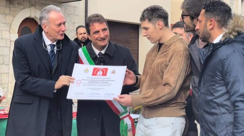 «Nella piazza di Rosello sono state consegnate le decorazioni che addobberanno l”Abete di Natale” che doneremo alla città del Vaticano. – spiega il sindaco del piccolo centro sangrino, Alessio Monaco – Alla presenza di tanti colleghi sindaci, del nostro parroco e del Prefetto di Chieti abbiamo ascoltato le testimonianze degli alunni delle scuole di Quadri, Villa Santa Maria, Pizzoferrato e Castiglione Messer Marino, dei nonni della casa di riposo Sant’Antonio di Borrello e degli ospiti della struttura psichiatrica riabilitativa “Quadrifoglio” di Rosello. Hanno realizzato addobbi straordinari, grazie a tutti. E il 3 dicembre prossimo tutti in Piazza San Pietro per la cerimonia di inaugurazione».