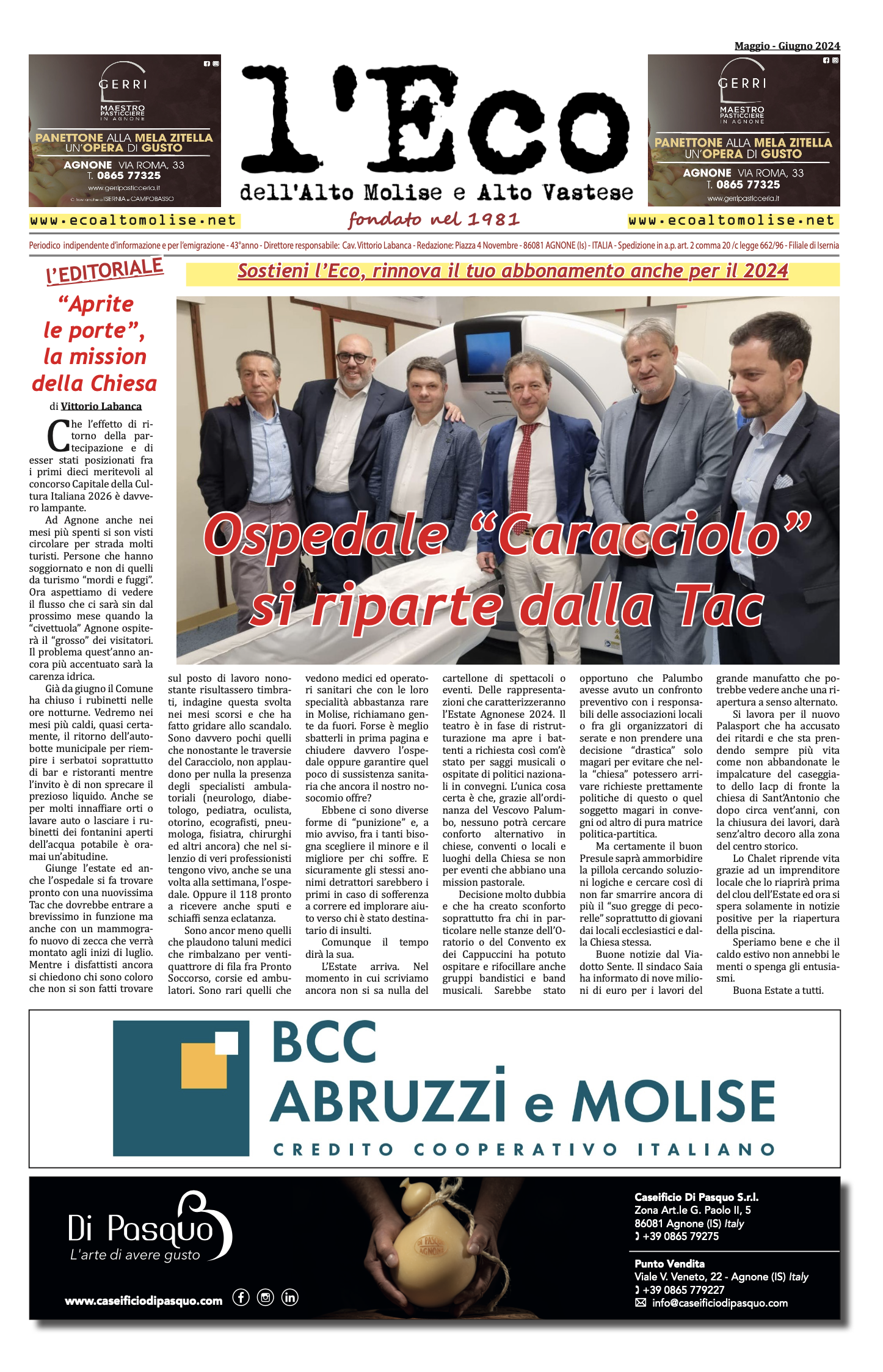 Disponibile online il nuovo numero (giugno - luglio 2024) del mensile l'Eco de l'Alto Molise - Vastese. La versione cartacea acquistabile nelle edicole di Agnone e Castiglione Messer Marino. Sostieni la stampa libera, compra una copia de l'Eco,…