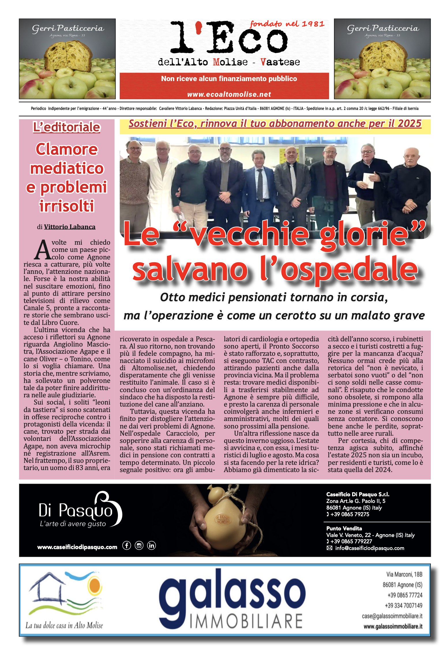 Disponibile online il nuovo numero (febbraio - marzo 2025) del mensile l'Eco de l'Alto Molise - Vastese. La versione cartacea acquistabile nelle edicole di Agnone e Castiglione Messer Marino. Sostieni la stampa libera, compra una copia de l'Eco,…
