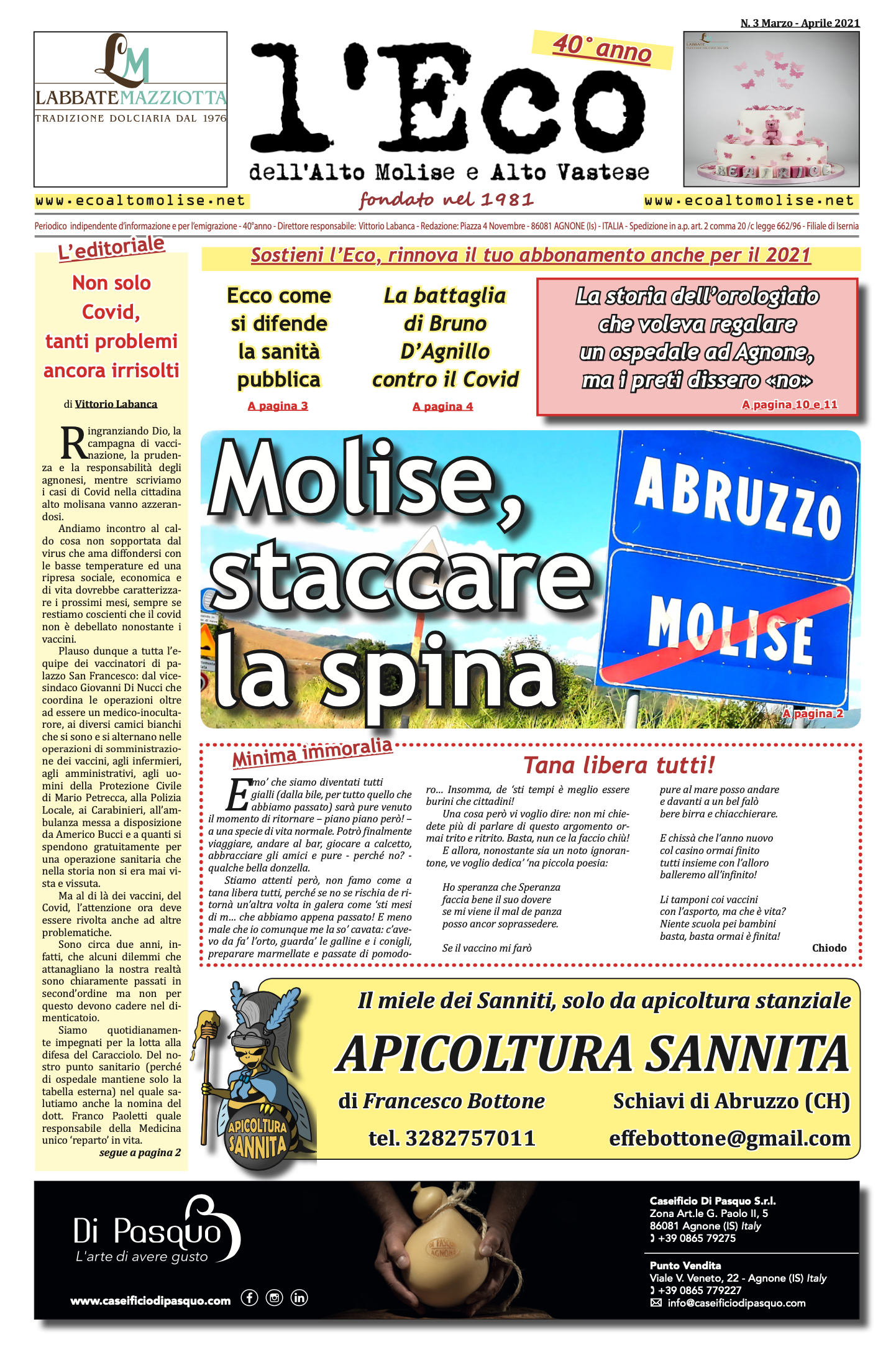 Disponibile online il nuovo numero (marzo - aprile 2021) del mensile l'Eco de l'Alto Molise - Vastese. La versione cartacea acquistabile nelle edicole di Agnone e Castiglione Messer Marino. Sostieni la stampa libera, compra una copia de l'Eco,…