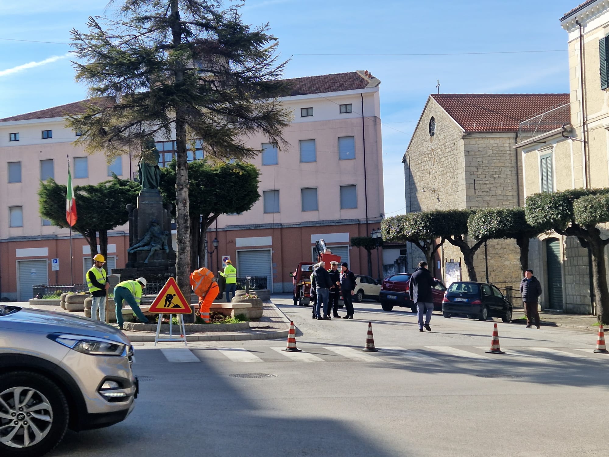 L’abete rosso ubicato in Piazza Unità d’Italia, davanti al monumento ai caduti di Agnone, sarà abbattuto. E già questa mattina sono iniziate le operazioni propedeutiche al taglio, alla presenza dello stesso sindaco Daniele Saia e del consigliere comunale Mario Petrecca.