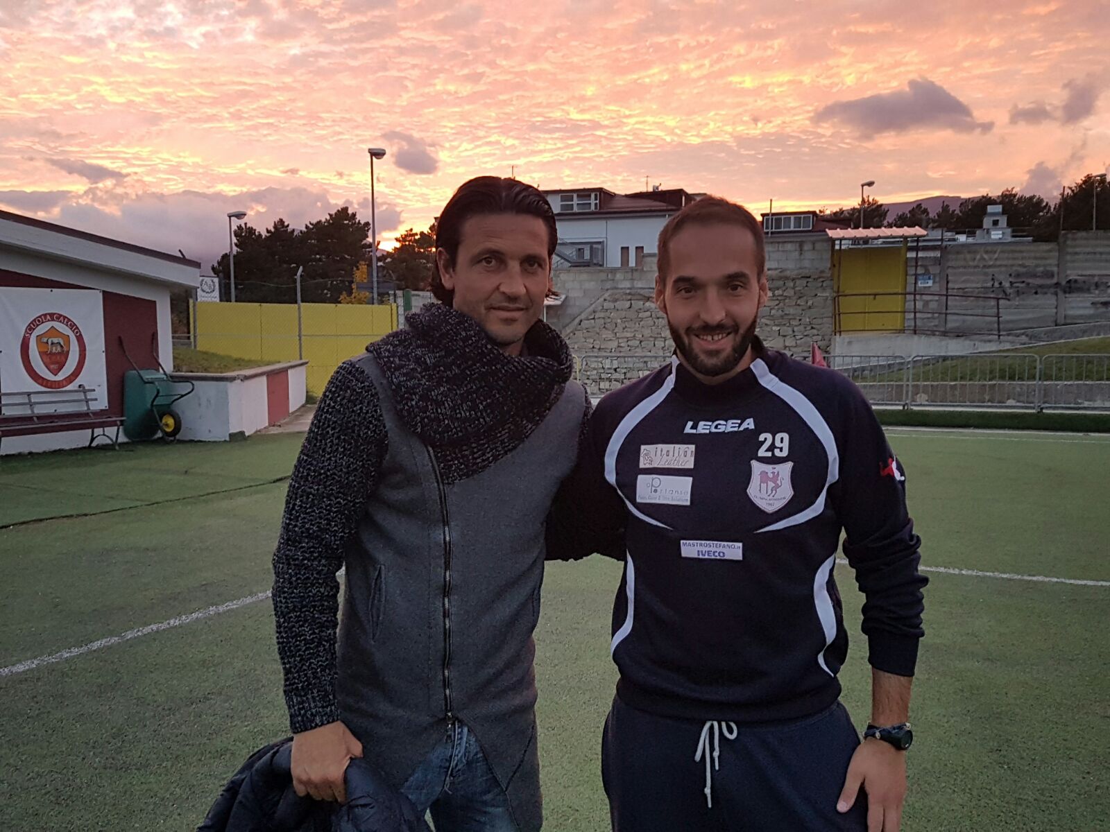 Il segreto dell’Olympia Agnonese capolista? Sta nei polmoni e nelle gambe allenate dal prof Alessandro Spinoglio (nella foto con mister Del Grosso), preparatore atletico dei granata. Classe ’80, laureato in Scienze delle attività motorie all’Università de L’Aquila, ex Lanciano in serie B, dove ha carpito i segreti del mestiere, Spinoglio, nell’intervista rilasciata a l’Eco online non vuole meriti e anzi sottolinea come le qualità tecniche e morali della rosa siano la vera arma in più dei molisani. “Un gruppo con una cultura del lavoro eccezionale – spiega – che dà il massimo sia durante la settimana che la domenica”. Alla domanda se c’è un calciatore che lo ha particolarmente impressionato, Spinoglio dribbla e replica così: “Ho notato che ognuno di loro mette in campo la massima professionalità. Non faccio nomi e non ho preferenze particolari”. Con mister Del Grosso l’intesa è perfetta “è lui che mi ha portato ad Agnone”, rammenta, mentre della società dice: “E’ una grande famiglia che non ci fa mancare niente, speriamo di ripagarla con risultati importanti”. Appunto, i risultati. “Non chiedetemi se dopo sette giornate mi aspettavo di essere primo in classifica, vi risponderei di no. Allo stesso tempo posso dirvi che è bello essere lassù e faremo di tutto per rimanerci più a lungo possibile”.