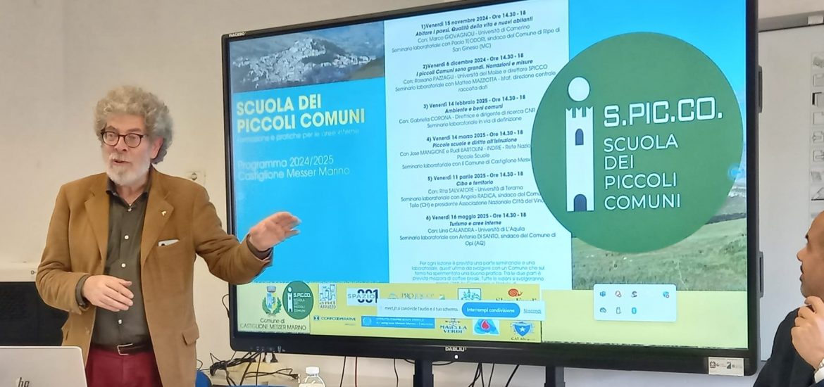 Terzo anno di attività per la Scuola dei Piccoli Comuni – formazione e pratiche per le aree interne (S.Pic.Co), il progetto nato nel 2023 a Castiglione Messer Marino e che ha riscosso una notevole attenzione a livello regionale e nazionale. Il programma delle lezioni e dei laboratori per il 2025/2026 sarà presentato mercoledì 15 ottobre alle ore 17 nel Palazzo comunale con gli interventi del Sindaco Silvana Di Palma, del professor Rossano Pazzagli, direttore della Scuola, di Fabrizio Di Marco, direttore della BCC Abruzzi e Molise che sostiene l’iniziativa, e di Mariano Nozzi direttore regionale della CIA.
