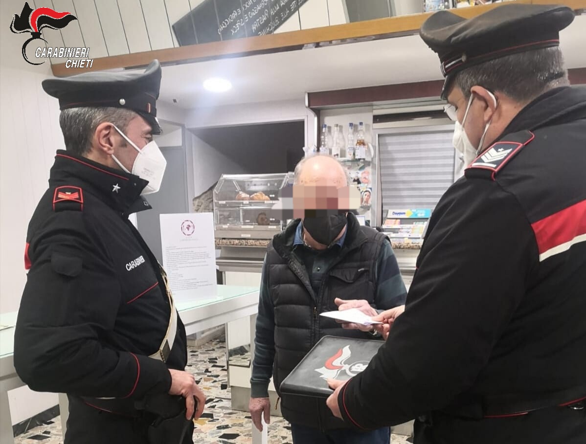 Green pass, controlli dei carabinieri della compagnia di Ortona nei locali pubblici; sanzionati a Tollo avventore di un bar ed il titolare per omessa vigilanza. Proseguono giornalmente i controlli dei carabinieri della compagnia di Ortona per il rispetto della normativa sul greenpass. In particolare sono stati svolti capillari controlli nel comune di Tollo e Canosa Sannita dove in un bar i carabinieri della locale stazione hanno trovato un avventore privo di green pass che è stato sanzionato con una multa di 600€ insieme al gestore dell’esercizio pubblico che aveva omesso il controllo all’ingresso.