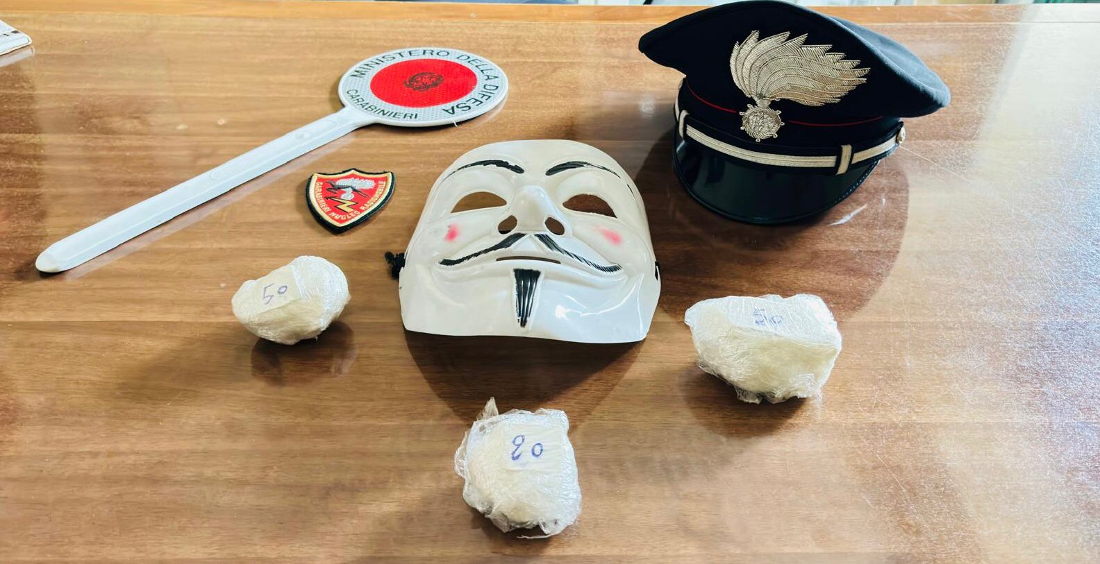 Avezzano (AQ) – Non capita tutti i giorni di incrociare un’auto guidata da un uomo mascherato da Anonymous. E, invece, è quello che è capitato ieri ai carabinieri di Avezzano vedendo sfrecciare una Golf lungo via Isaac Newton. Insospettiti dalla maschera indossata dal conducente, i militari del nucleo radiomobile hanno inseguito la vettura sino al cinema Astra di via Sandro Pertini e, con il supporto di una pattuglia della volante del commissariato di polizia, hanno proceduto controllato i tre occupanti del mezzo.