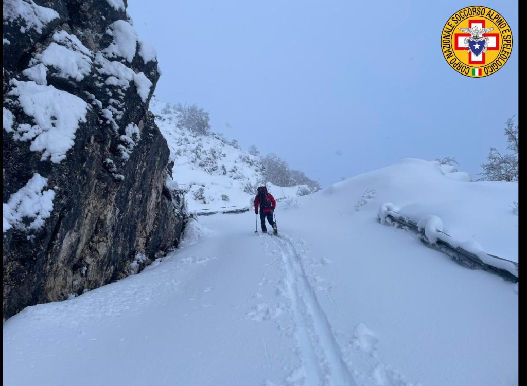 In attesa del mezzo spartineve, una squadra del Soccorso Alpino si è incamminata mediante sci da alpinismo e materiale sanitario di primo soccorso, in modo da raggiungere il più presto possibile i due allevatori nella bufera per prestare loro le prime cure.