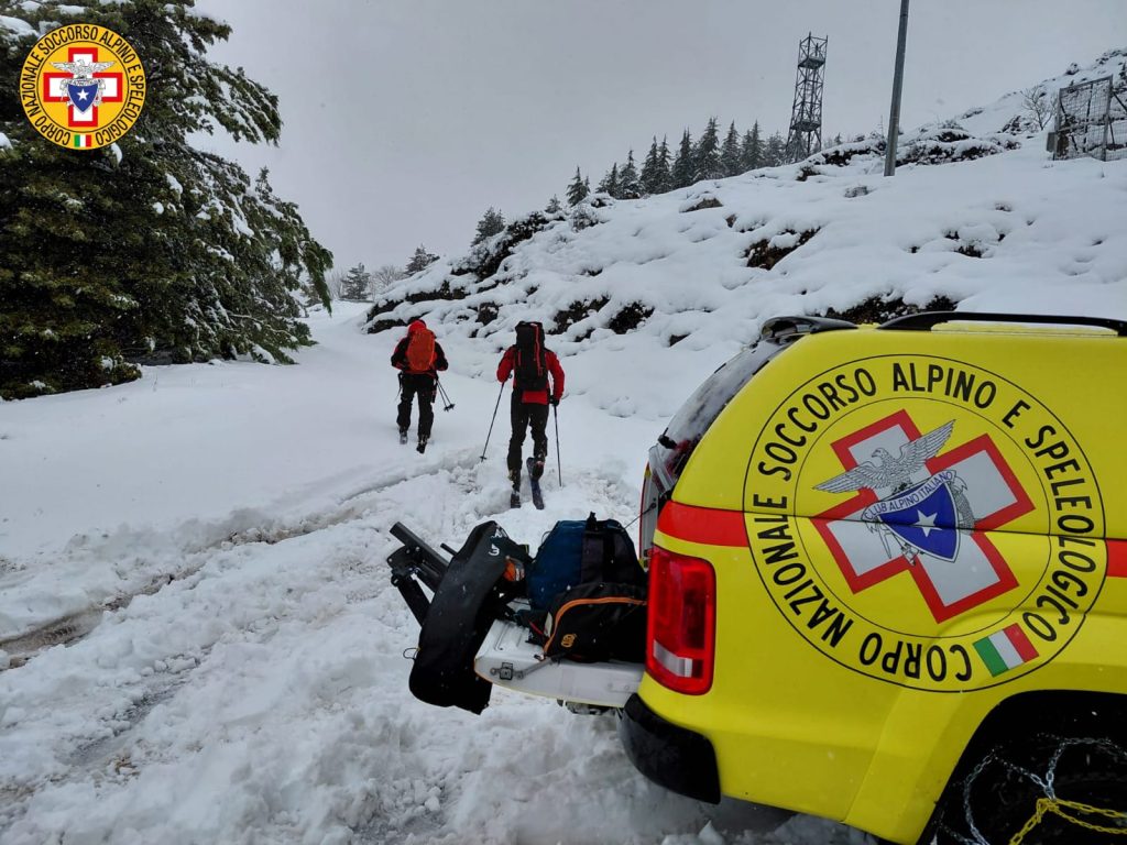 In attesa del mezzo spartineve, una squadra del Soccorso Alpino si è incamminata mediante sci da alpinismo e materiale sanitario di primo soccorso, in modo da raggiungere il più presto possibile i due allevatori nella bufera per prestare loro le prime cure.