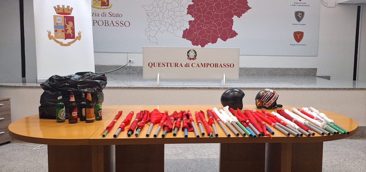 Lo scorso 25 ottobre, in occasione dell’incontro di calcio di Serie C “Campobasso – Rimini”, la Questura di Campobasso ha disposto i consueti sevizi di ordine pubblico, nei quali è stato impiegato personale territoriale della Polizia di Stato, dell’Arma dei Carabinieri e della Guardia di Finanza, nonché un’aliquota di rinforzo del Reparto Mobile di Napoli.