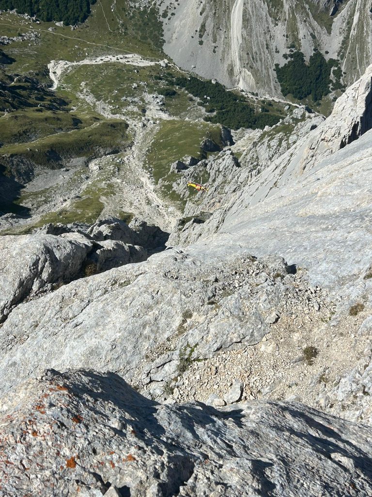 Quasi in contemporanea, un secondo intervento si è reso necessario sempre sul Corno Piccolo, lungo la via Mallucci-Geri-Longomarsino. Un alpinista è precipitato per oltre quindici metri, riportando diversi traumi che hanno richiesto un immediato recupero.