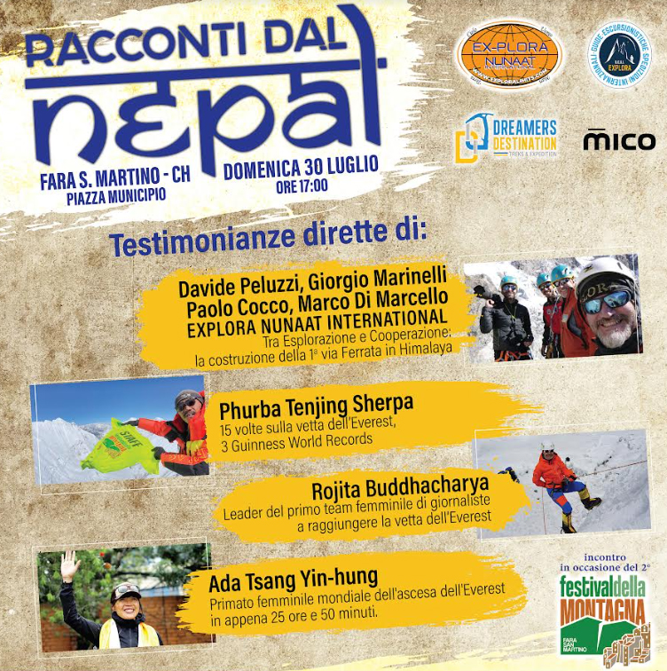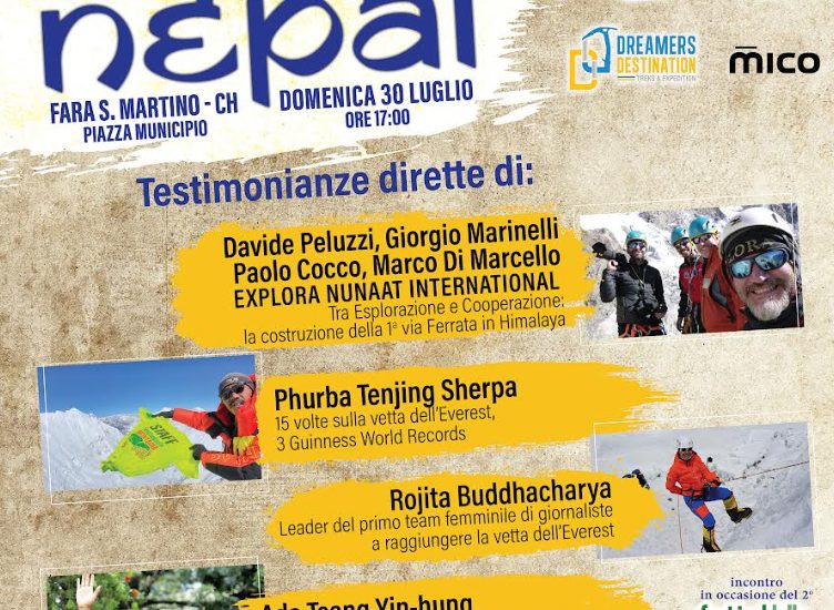 Davide Peluzzi, Giorgio Marinelli e Paolo Cocco dell’associazione abruzzese Explora Nunaat International apriranno l’evento, racconteranno la costruzione della prima via ferrata nell’intera regione himalayana tra il 2017 e il 2019 fino all’ultima spedizione, di solo pochi mesi fa, interessante dal punto di vista esplorativo e di ricerca scientifica, in collaborazione con diverse università italiane. Inoltre, l’Explora ha avuto un discreto impatto sulle comunità locali costruendo un acquedotto, fornendo accesso ad acqua pulita ad una scuola con più di 400 bambini, e sostenendo l’istruzione attraverso donazioni di laptops in una scuola della remota valle della Rolwaling.