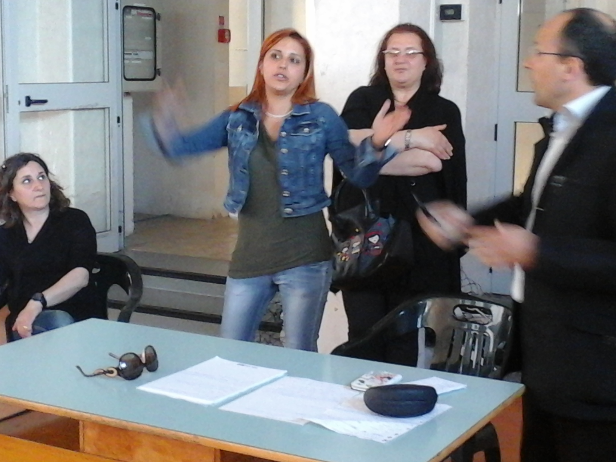 «I nostri diritti, quelli scritti sulla Costituzione, sono sistematicamente violati e calpestati. – ha esordito Marialaura Magnacca (al centro nella foto in alto, ndr) tra gli applausi degli oltre cento presenti –