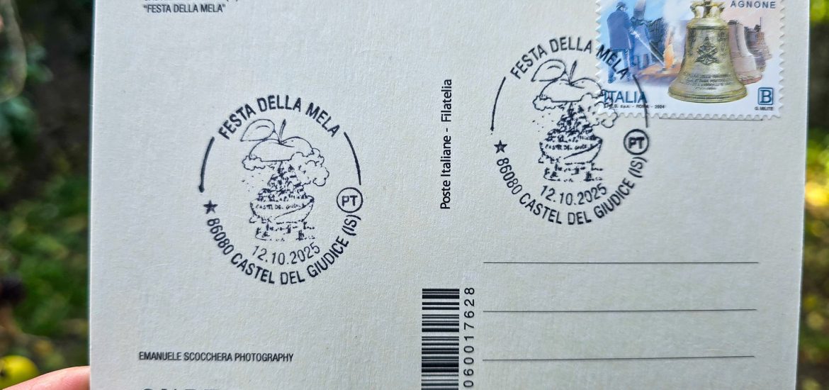 Annullo filatelico speciale di Poste Italiane dedicato a Castel del Giudice e al suo simbolo: la mela, celebrata proprio in questi giorni nel corso dell’ottava edizione della “Festa della Mela”. L’immagine grafica mostra una simbolo cristiano di seduzione, tentazione e caduta, ma nel simbolismo magico, rappresenta la conoscenza, la ricchezza prospera e la rinascita.