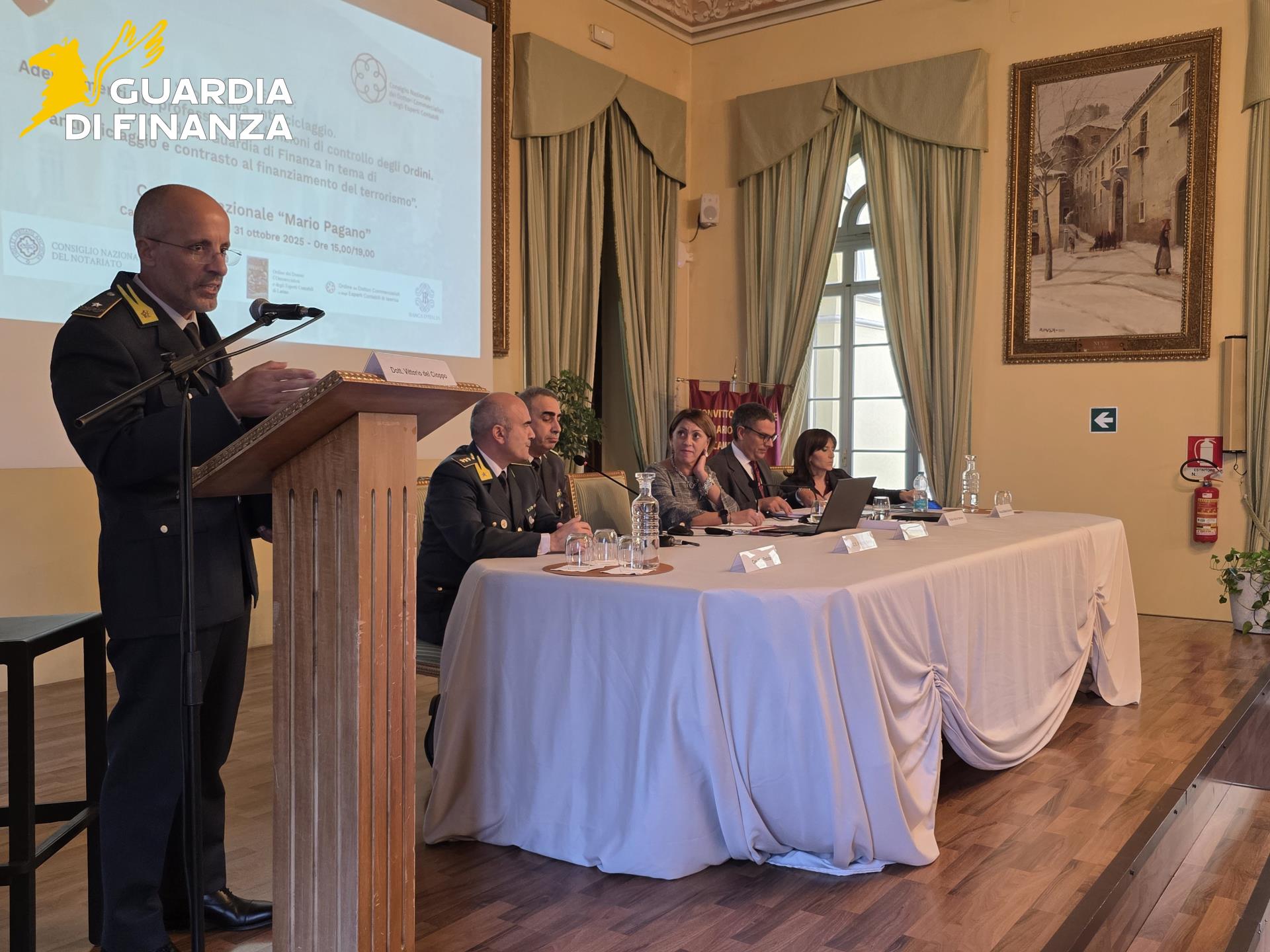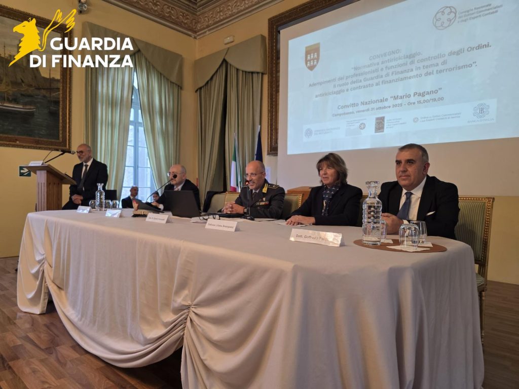 Nel pomeriggio di oggi, a Campobasso, presso la sede del Convitto Nazionale “Mario Pagano”, si è tenuto il convegno dal titolo “Normativa antiriciclaggio. Adempimenti dei professionisti e funzioni di controllo degli Ordini. Il ruolo della Guardia di Finanza in tema di antiriciclaggio e contrasto al finanziamento del terrorismo”.