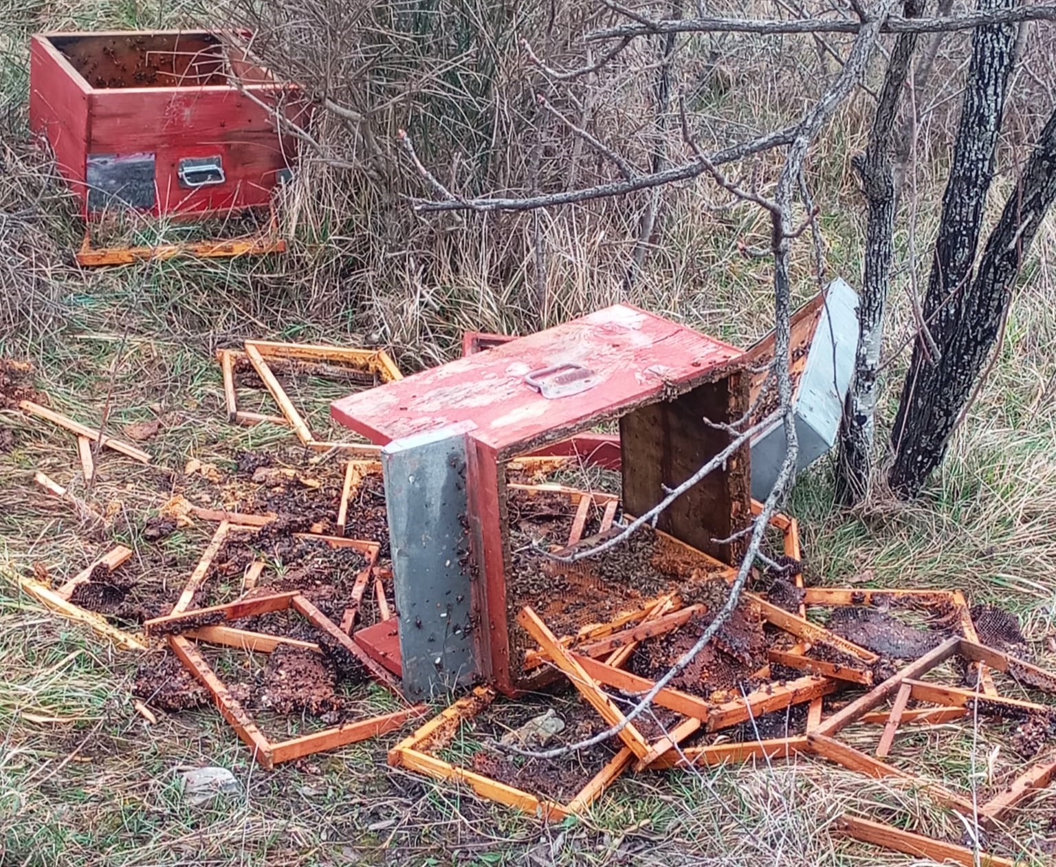 Le “casette”, in numero di due, sono state gettate a terra dagli appoggi sui quali sono normalmente posizionate e l’animale in questione, presumibilmente un orso, ha letteralmente sventrato i manufatti per arrivare al miele, che per il vero in questo periodo è piuttosto scarso, o al candito, cioè alla nutrizione suppletiva inserita nelle arnie dagli apicoltori in questa fase della stagione durante la quale non ci sono ancora fioriture nettarifere importanti. Si tratta, è opportuno ribadirlo, di una mera ipotesi che si sia trattato in effetti dell’incursione di un orso. Certo è che le arnie sono state gettate al suolo e completamente distrutte. Fatto questo che escluderebbe la caduta accidentale, magari dovuta al vento, ma anche l’incursione di altri animali, come ad esempio i cinghiali, che non sono in grado di procurare quelle lesioni su una cassa di legno piuttosto robusta. Anche l’ipotesi del danneggiamento volontario da parte di una persona, un atto di volgare vandalismo, parrebbe poter essere esclusa per gli stessi motivi di cui sopra. Tra l’altro nella zona, proprio nei pressi dell’apiario devastato, sono state rinvenute delle tracce lasciate sul terreno che potrebbero essere compatibili con quelle di un plantigrado.
