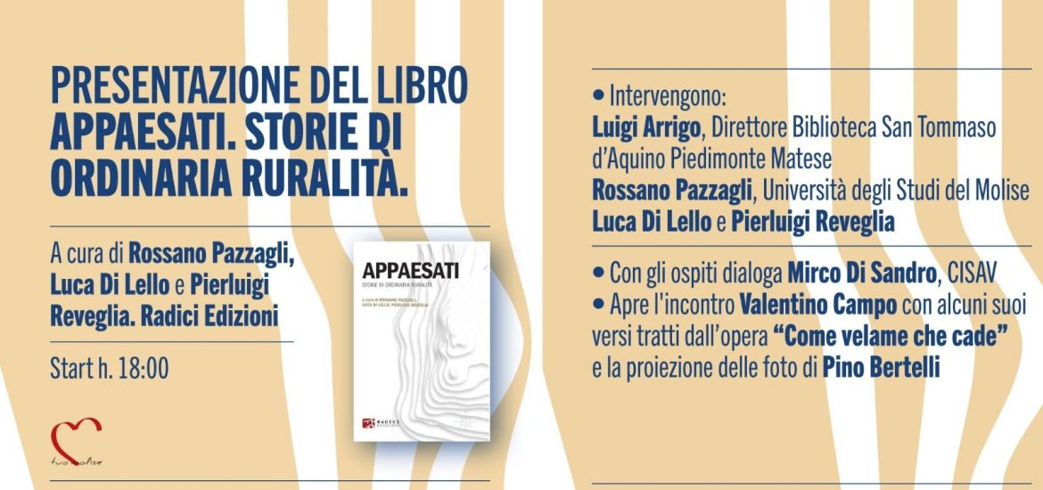 Ecco gli ospiti dell’appuntamento di mercoledì 14 gennaio, ore 18, al Living di Isernia per la presentazione del libro Appaesati. Storie di ordinaria ruralità, Radici edizioni.