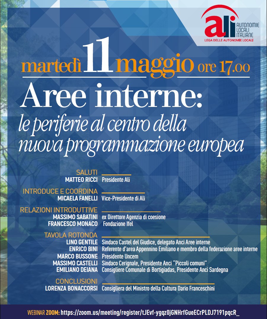 Il tema delle aree interne e delle periferie nella nuova programmazione europea sarà al centro di un ampio confronto promosso da ALI in programma martedì 11 maggio a partire dalle ore 17.