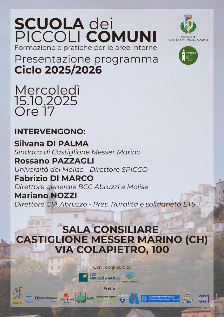 «Un progetto nato dal basso e cresciuto sul territorio per la rigenerazione delle aree interne italiane». Rossano Pazzagli, docente dell’Unimol, annuncia con queste parole il rinnovato avvio delle attività culturali e politiche della “Scuola dei piccoli Comuni“, di cui lo stesso professore è direttore scientifico. Oggi pomeriggio, alle ore 17, nella sala consiliare del Comune di Castiglione Messer Marino, sarà infatti presentato ufficialmente il programma del nuovo ciclo 2025/2026 della Scuola dei Piccoli Comuni.