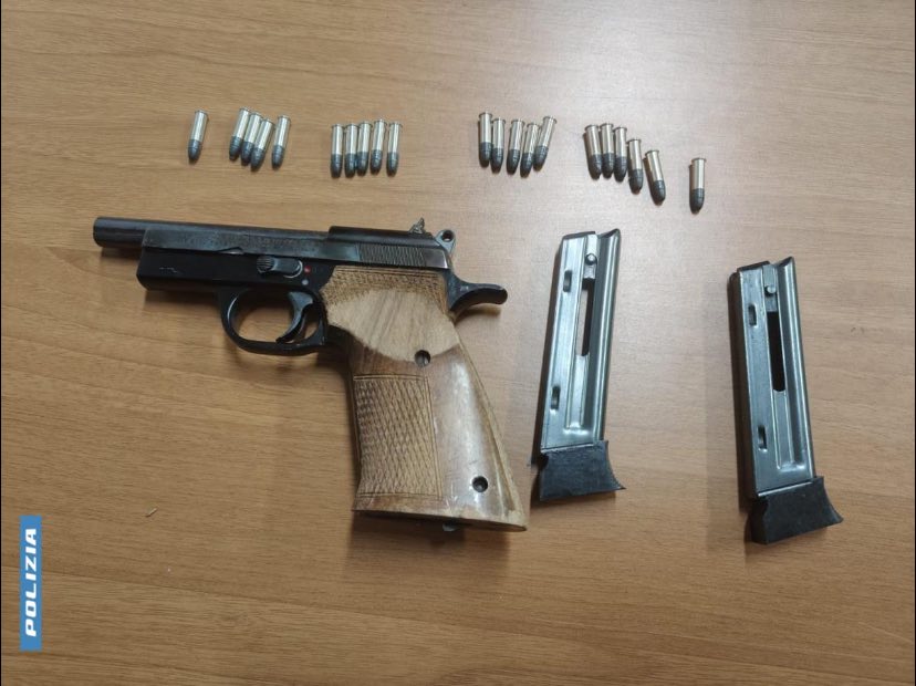 Per il recupero di quell’involucro e la ricerca di altri eventualmente interrati nelle vicinanze, gli operatori si sono avvalsi anche della collaborazione dei Vigili del Fuoco. Una volta estratto il contenuto da quel singolare nascondiglio, i poliziotti hanno scoperto esservi una pistola Beretta cal. 22, artigianalmente modificata con l’accorciamento della canna per renderla più facilmente occultabile e trasportabile, con matricola abrasa, corredata di due caricatori e 21 colpi. Il tutto era avvolto da buste di plastica e nastro isolante, facendo dunque ipotizzare un imminente utilizzo della pistola per la commissione di reati. L’arma clandestina ed il munizionamento sono stati quindi sequestrati, in attesa dei successivi accertamenti del caso.