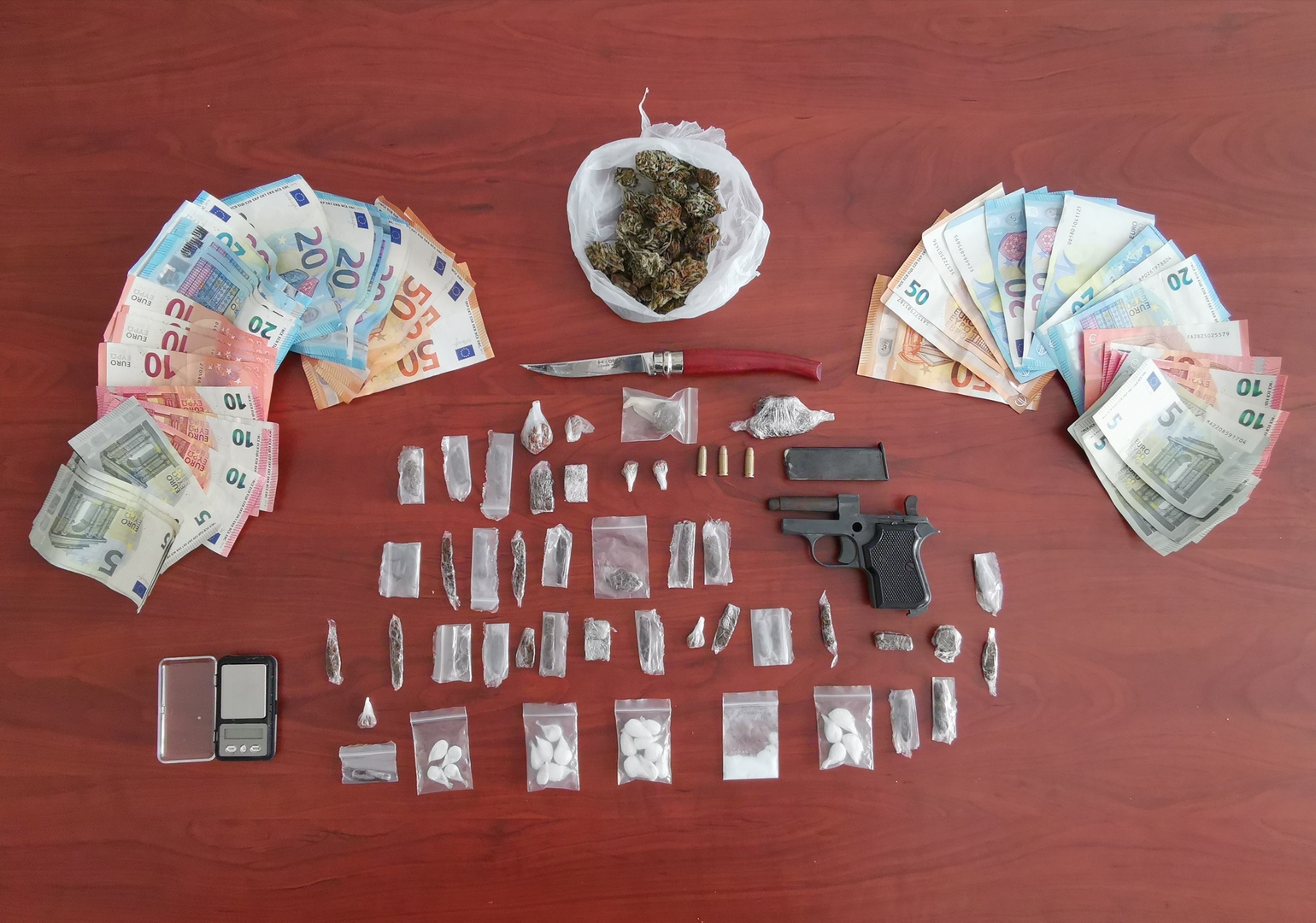 Nel corso di mirati servizi di controllo del territorio, infatti, i Carabinieri della Stazione di Campomarino hanno effettuato una perquisizione domiciliare d’iniziativa presso un’abitazione di quel centro, in uso ai citati giovani, rinvenendovi all’interno un significativo quantitativo di sostanze stupefacenti (grammi 8 di cocaina, grammi 8 di eroina, grammi 25 di marijuana, grammi 55 di hashish) già in parte frazionate per il successivo spaccio, un bilancino elettronico di precisione, materiale vario per il confezionamento della droga, una pistola calibro 6,35 mancante della culatta-otturatore e sprovvista di marca e matricola, 3 cartucce del medesimo calibro, un coltello a serramanico avente la lama con tracce di hashish ed anche la somma contante di 1.030,00 in banconote di vario taglio, verosimile provento di pregressa attività di spaccio.
