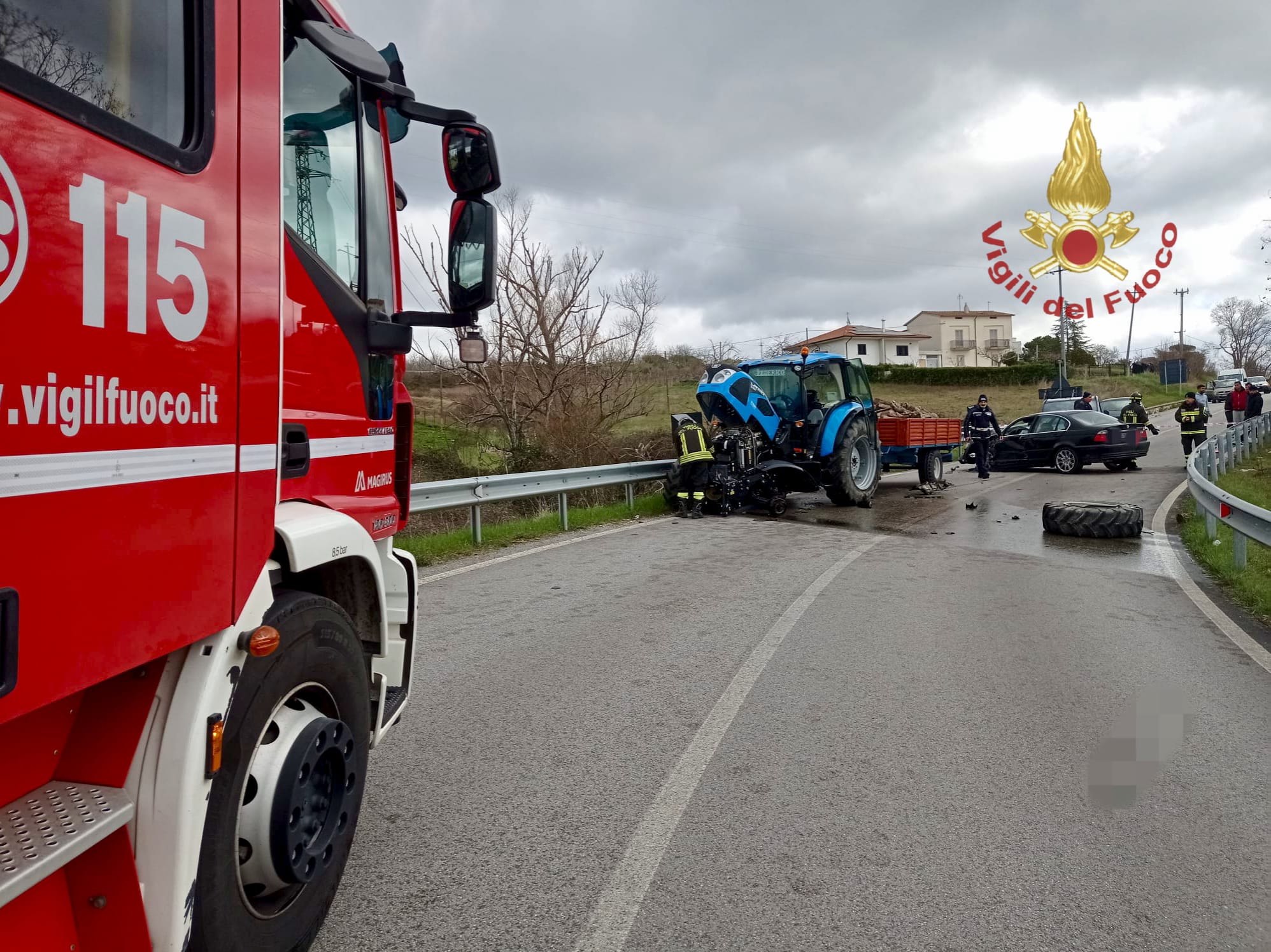 Nella tarda mattinata di oggi una squadra di Vigili del Fuoco del Comando di Campobasso è intervenuta sulla SS87 in territorio di Ripalimosani (CB) per un incidente stradale tra autovettura e trattore con rimorchio. Due i feriti, nello scontro tra i due automezzi.