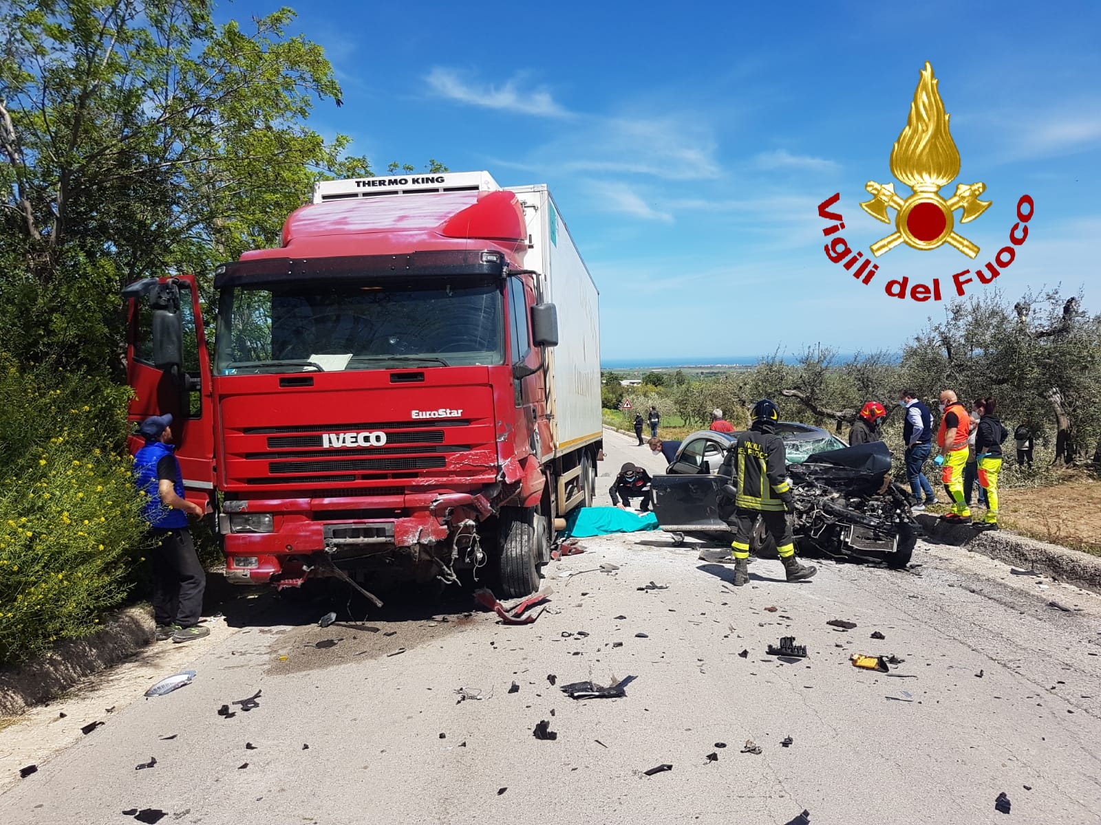 Alle ore 12 circa di oggi, una squadra del distaccamento Vigili del fuoco di Termoli è intervenuta per un incidente stradale sulla Sp40 alle porte di San Martino in seguito ad un violento impatto tra due automezzi. L’area dell’evento è stata messa in sicurezza dai Vigili del fuoco operanti, mentre il personale medico del 118 constatava il decesso del 59enne alla guida dell’autovettura. Ferite lievi per l’autista del mezzo pesante. Sul posto, per i rilievi del caso, i Carabinieri di San Martino.