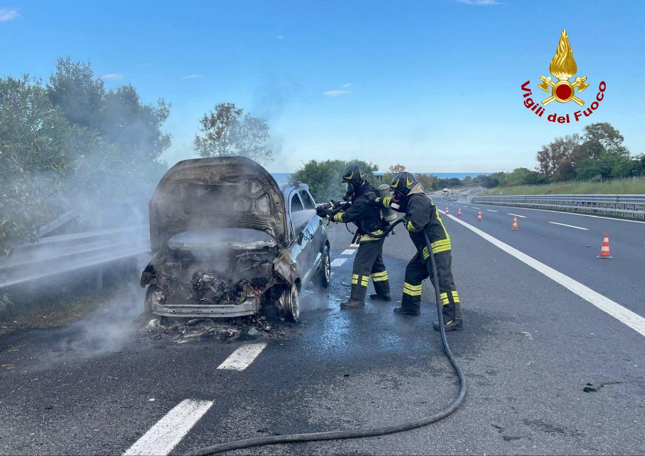 Auto in fiamme sull’autostrada, intervento dei Vigili del fuoco