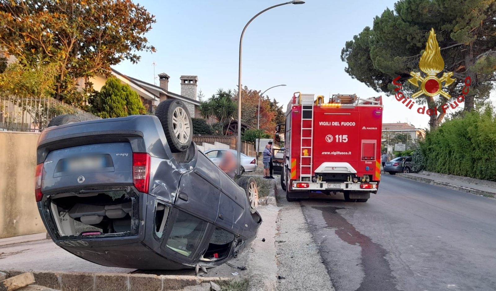 Auto si ribalta, donna intrappolata tra le lamiere: salvata dai Vigili del fuoco