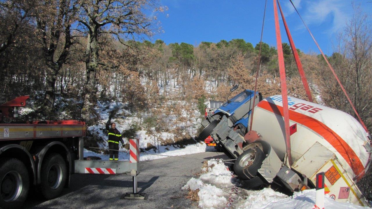 È stata rimossa oggi l’autocisterna di GPL che il 31 dicembre a causa del fondo ghiacciato si è ribaltata lungo la strada provinciale per Macchiagodena. I mezzi della Provincia hanno ultimato la pulizia della strada consentendo di poter operare in sicurezza. Il mezzo fortunatamente era quasi privo di GPL. Con l’ausilio di due automezzi e in particolare della Autogru dei VF sono state effettuate le operazioni di recupero in collaborazione con i Carabinieri della locale Stazione per il blocco del traffico durante le operazioni che sono durate circa un’ora. Recupero effettuato con successo, il mezzo, scortato dai Carabinieri, ha raggiunto successivamente in maniera autonoma una officina per le opportune verifiche.