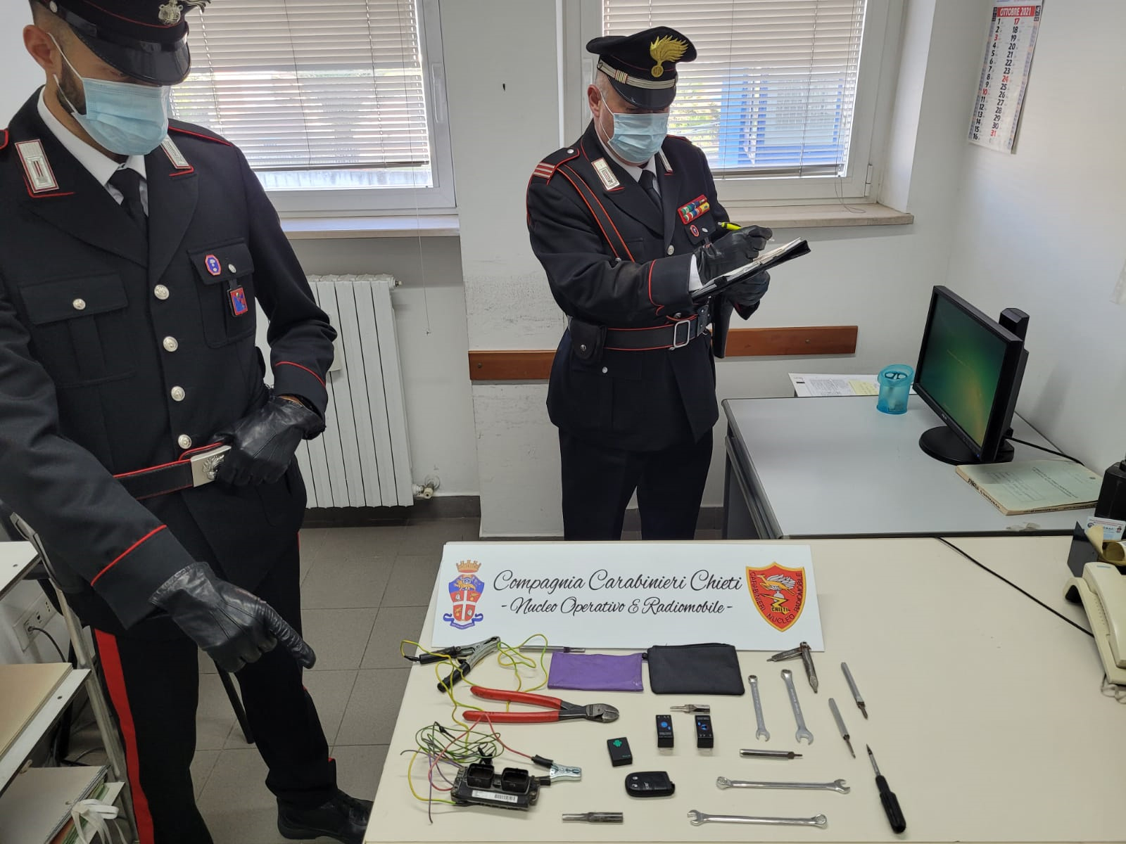 Si preparavano a una nottata di furti di autovetture o in abitazione, ma sono stati bloccati dai Carabinieri prima che potessero colpire. Tre uomini e una donna, tutti di origine pugliese e con alle spalle precedenti penali per furti di veicoli, sono stati denunciati a piede libero dai militari della sezione Radiomobile della compagnia di Chieti. Il quartetto è stato notato dai Carabinieri aggirarsi con fare sospetto a Francavilla al Mare, lungo viale Alcione, a bordo di una Fiat Punto. A quel punto, l’automobilista e i passeggeri sono stati sottoposti a perquisizione e i Carabinieri hanno sequestrato diversi arnesi e grimaldelli da scasso modificati, una centralina Magneti Marelli per auto con due prese collegate con filo elettrico, un lettore di codici elettronici, un telecomando per auto di colore nero e varie chiavi inglesi di diversa misura. Nei confronti dei quattro indagati sono scattate le accuse di porto ingiustificato di strumenti atti ad offendere e possesso ingiustificato di chiavi alterate o grimaldelli.