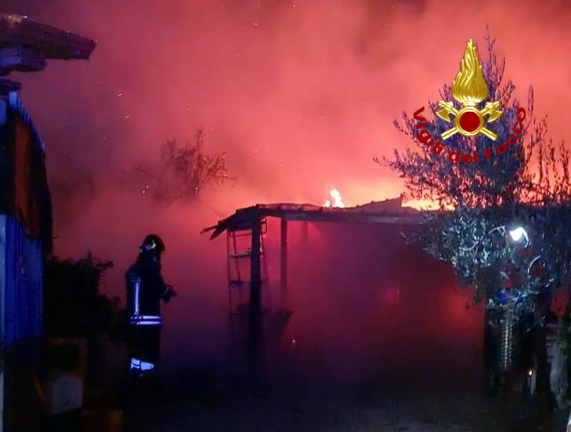Baracca in fiamme: i Vigili del fuoco mettono in sicurezza bombole di propano