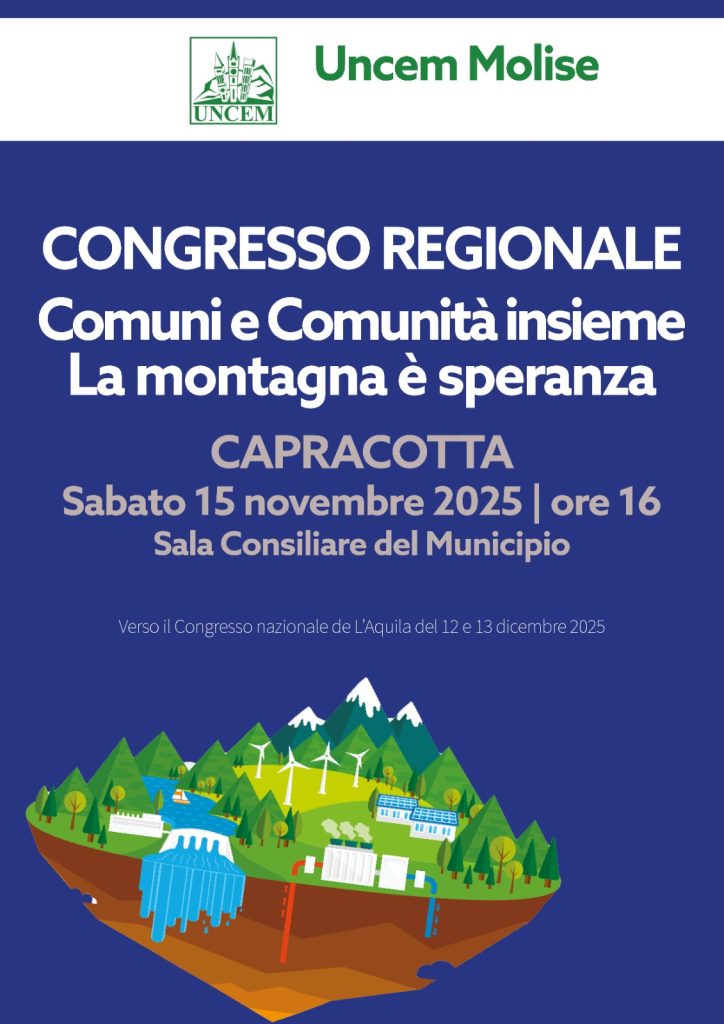 «Tutti protagonisti insieme, con Uncem, nel pomeriggio di sabato 15 novembre, dalle ore 16 in Municipio a Capracotta» annuncia il sindaco Candido Paglione, nella duplice veste di amministratore locale e di presidente regionale dell’Uncem appunto. Uncem organizza infatti il congresso regionale del Molise, con la delegazione guidata da Candido Paglione, proprio nel Comune più in quota dell’Alto Molise, il paese simbolo della montagna di mezzo, quella abitata, sia pure con tutte le difficoltà del caso. Non solo il rinnovo degli organi regionali dell’associazione nata nel 1952, verso il Congresso nazionale del 12 dicembre all’Aquila.
