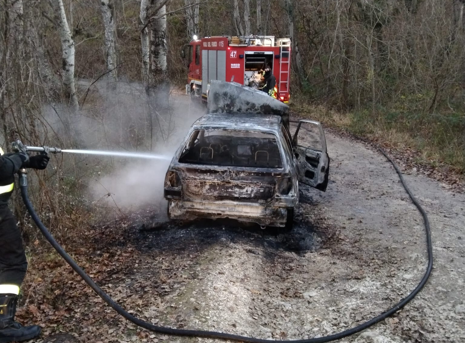 Un’auto letteralmente avvolta e distrutta dalle fiamme. L’episodio si è verificato qualche ora fa nell’hinterland di Belmonte del Sannio, in località Colle Sant’Angelo. Invano il tentativo di spegnere l’incendio dei Vigili del fuoco arrivati sul posto dove ora si attende il sopralluogo dei Carabinieri della compagnia altomolisana. Agli uomini dell’Arma, al comando del maggiore Evangelista, il compito di risalire alla dinamica che probabilmente è di origini dolosa e riconducibile alla ‘guerra’ in atto tra tartufai del posto.