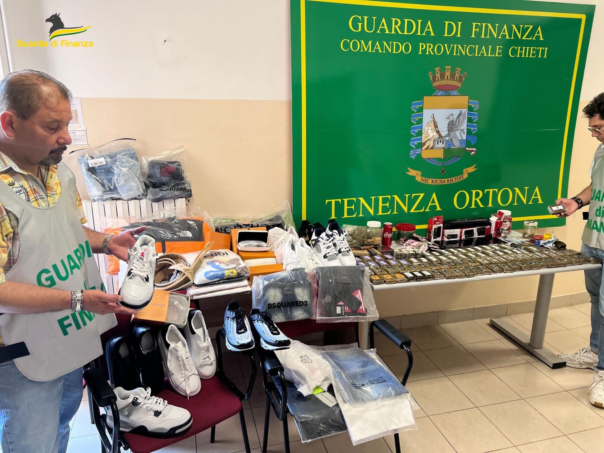 Il comando provinciale della Finanza di Chieti, nell’ambito della costante azione di controllo del territorio e contrasto al traffico di sostanze stupefacenti, ha tratto in arresto un soggetto e sequestrato circa nove chilogrammi di sostanze psicotrope, cinture, occhiali e capi di abbigliamento contraffatti di note “griffe”.