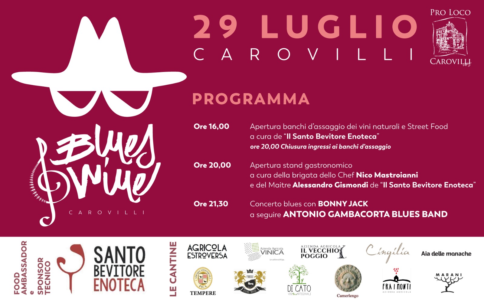 La Pro Loco “Monte Ferrante” di Carovilli è lieta di presentare anche quest’anno uno degli eventi più importanti nel panorama enogastronomico e musicale molisano: il Blues & Wine 2023 che si terrà a Carovilli, in Piazza Municipio e Largo Palazzo il giorno 29 Luglio.