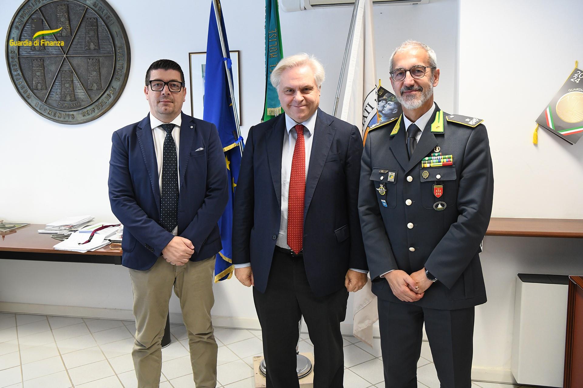 Con le firme del Magnifico Rettore dell’Università degli Studi del Molise, Prof. Luca Brunese, del Presidente dell’Ente per il Diritto allo Studio Universitario del Molise, Avv. Giovanni Petrarca, e del Comandante Regionale Molise della Guardia di Finanza, Generale di Brigata Luca Cervi, è stato perfezionato il protocollo d’intesa con il quale sono state stabilite, nel quadro dei rispettivi fini istituzionali, le linee di reciproca collaborazione finalizzate ad assicurare una più intensa attività di controllo in materia di posizioni reddituali e prestazioni sociali agevolate, anche con riferimento alle borse di studio e agli alloggi per gli studenti universitari.
