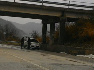 Automobili bloccate sulla fondovalle Trigno con pneumatici scoppiati o lacerati.