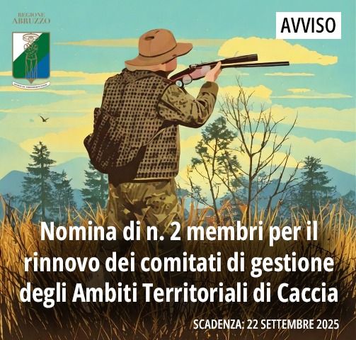 La Regione Abruzzo ha pubblicato un avviso per la presentazione delle candidature ai fini della designazione di due componenti in seno al Comitato di Gestione degli Ambiti Territoriali di Caccia da rinnovare: Avezzano, Roveto-Carseolano, Barisciano, Subequano e Pescara.