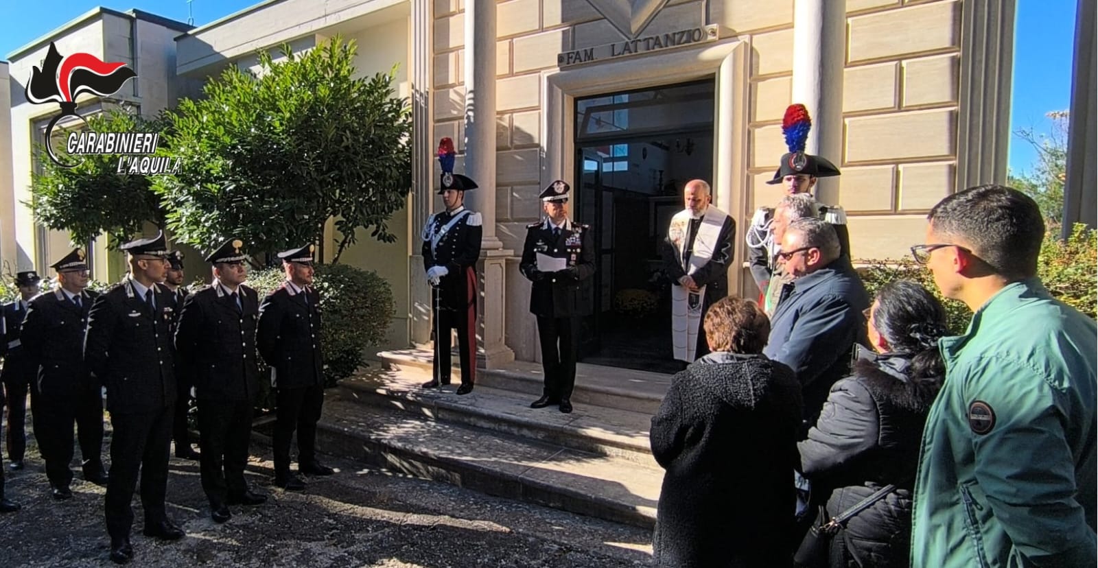 Attorno ai familiari del Maresciallo Lattanzio, oltre al Generale Feroce, si sono stretti nel ricordo il Comandante del Reparto Operativo del Comando Provinciale Carabinieri dell’Aquila, Ten. Col. Luigi Vaglio, il Comandante della Compagnia Carabinieri di Sulmona, Magg. Toni Di Giosia, con una rappresentanza di donne e uomini dell’Arma appartenenti alle Stazioni dipendenti, il primo cittadino di Pacentro, Giuseppe Silvestri, ed una rappresentanza dell’A.N.C. e dell’A.N.FOR.