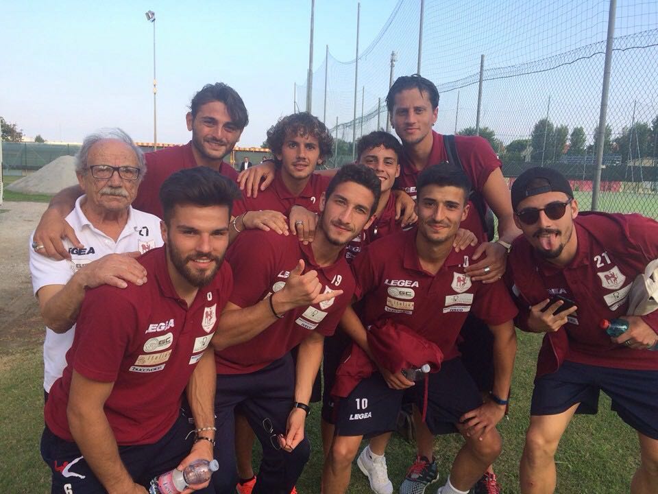 IL più piccolo paese del raggruppamento (5200 abitanti) e con un budget societario ridotto all’osso, spaventa le grandi del girone F. Vola la Cenerentola, ma solo sulla carta, Olympia Agnonese, alle spalle dieci anni di serie D (altro record con la Recanatese, ndr) e mai così in alto. Tre vittorie, due pareggi e niente sconfitte,  +1 di media inglese e la seconda miglior difesa con tre reti subite, stanno accendendo l’entusiasmo nel comprensorio tra alto Molise e Vastese, bacino che ogni domenica si riversa al “Civitelle”, primo stadio nel Mezzogiorno d’Italia senza barriere e con sintetico. Merito del  lavoro svolto dall’esordiente tecnico Alessandro Del Grosso. Quarantaquattro anni, alla sua prima esperienza in quarta serie, Del Grosso, un passato da calciatore in serie A con le maglie di Bari e Salernitana, si sta rivelando una piacevole sorpresa grazie ad un calcio frizzante, ma soprattutto pragmatico. In squadra a parte Erminio Rullo, 32enne difensore ex Lecce e Napoli, non ci sono nomi altisonanti e la forza è rappresentata da un gruppo granitico costruito con oculatezza e senza fretta dal diesse Nicola D’Ottavio, agnonese doc, un passato da zingaro del gol per lo stivale. Così dopo aver battuto in estate la concorrenza di gente come Pino Di Meo, Massimo Agovino, Francesco Farina e Antonio Mecomonaco, Del Grosso, dopo cinque giornate,  si è rivelato il più bravo della classe. E domenica l’occasione per allungare. Infatti mentre al “Civitelle” arriva il derelitto Chieti, la sesta giornata proporrà anche Matelica-Vastese, le altre due squadre che dividono la prima piazza con i molisani e chissà non ci scappi un pareggio. Corre da matti la domenica l’undici granata grazie al meticoloso lavoro settimanale del giovane prof Alessandro Spinoglio, l’anno scorso alle dipendenze della Virtus Lanciano in serie B. Corre l’Olympia come la gazzella che scappa dal leone, perché sa di dover  agguantare quanto prima la salvezza e  festeggiare degnamente  il cinquantesimo anno di vita (è stata fondata nel 1967). Vissuti quasi interamente da Michele Guerrizio, storico magazziniere, tifosissimo del Toro (stessi colori dell’Agnonese) e al “Civitelle” dal 1970 quando ancora si respirava la polvere del campo in terra battuta. Numeri da record che vanno a intrecciarsi con chi offre gratuitamente le proprie competenze. E’ il caso dei tecnici Candido Bucci (allenatore in seconda) e Antonio Di Pasquo (preparatore dei portieri): entrambi non percepiscono un centesimo ma al tempo stesso garantiscono un apporto fondamentale alla causa.  Vola l’Agnonese che ora sogna uno stadio tutto nuovo, chissà per quali altre sfide…(nella foto alcuni componenti della rosa dopo l’ultima vittoria sulla Sammaurese)
