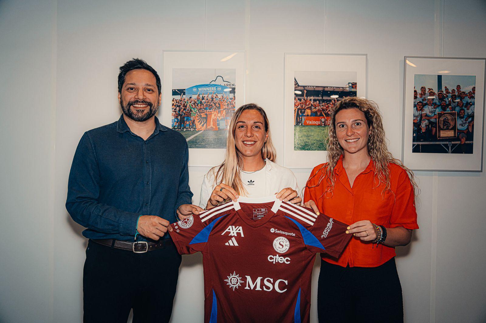 Nel corso della sua carriera, Marinelli (in foto con il presidente e direttrice generale) ha indossato le maglie di Perugia, Chieti, Inter e Milan, oltre a collezionare presenze con la nazionale italiana. La sua esperienza, unita a una spiccata propensione al gol, rappresenta un innesto di qualità per il Servette, deciso a puntare in alto in questa stagione.