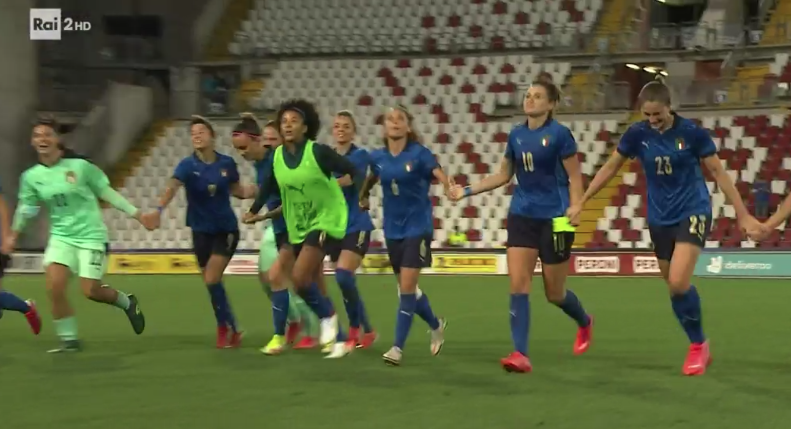 Italia (4-3-3): Giuliani; Bergamaschi (58′ Serturini), Gama (58′ Salvai), Linari, Bartoli; Giugliano (81′ Caruso)RosucciCernoia (72′ Boattin)Bonansea (72′ Glionna)GirelliGiacinti. A disp.: Durante, Baldi, Galli, Pirone, Di Guglielmo, Lenzini, Soffia. Ct: Milena Bertolini