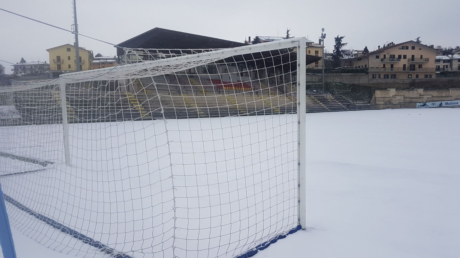 AGNONE – L’Olympia Agnonese riprende gli allenamenti al coperto. Nel pomeriggio, infatti, la rosa granata agli ordini del tecnico Pino Di Meo ha effettuato la seduta al palasport di viale Europa causa i circa dieci centimetri di neve che hanno ricoperto il rettangolo del “Civitelle”.