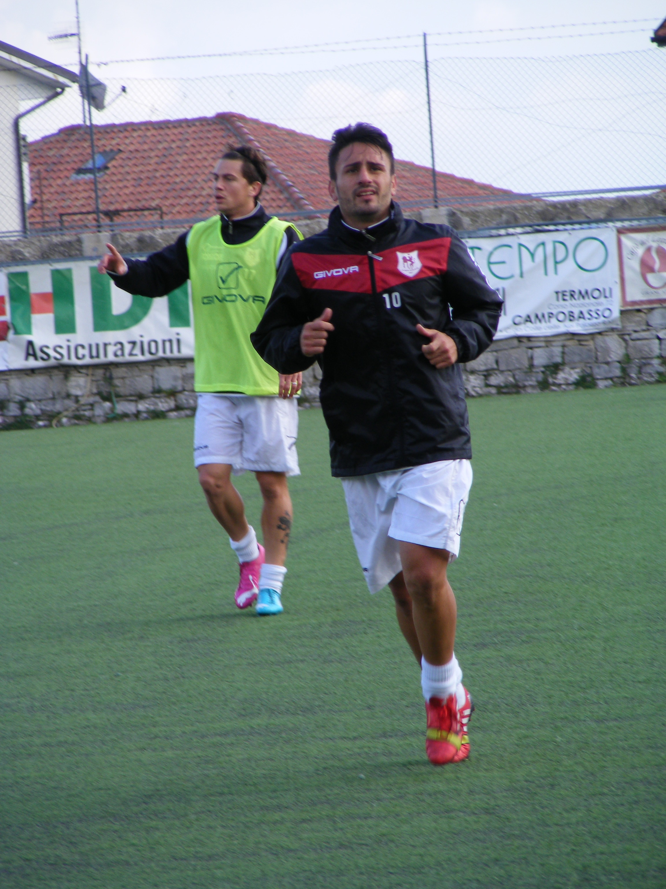Vittoria doveva essere e vittoria è stata. L’Olympia Agnonese suda le proverbiali sette camice per avere la meglio di un avversario, il Matelica, giunto il Molise con il chiaro intento di giocarsi la gara a viso aperto. Nonostante i marchigiani non avessero più nulla da chiedere al campionato, si è trattato di un match vero disputato con grande intensità. Alla fine ha vinto l’Agnonese grazie ad una magia di Pasquale Di Lullo (nella foto) messa a segno ad un quarto d’ora dal triplice fischio finale. Un gol liberazione che tiene accese le speranze di salvezza dei granata. Ma quanta paura per il rigore assegnato dal pessimo Fusco di Brindisi agli ospiti al 59’ e fallito da Ambrosini. L’attaccante, ex Ancona, più tardi (86’) ha centrato anche un palo su calcio di punizione calciato dal limite dell’area. Ammoniti Maresca e Di Lullo: salteranno la prossima trasferta di Macerata. A 180 minuti dalla fine della stagione, l’Agnonese supera in classifica la Vis Pesaro e resta in corsa per disputare i play-out salvezza. Visto il calendario (Maceratese e Chieti) l’impresa appare ardua, ma la rosa di Melloni ha il dovere di provarci fino alla fine. Come fatto oggi…