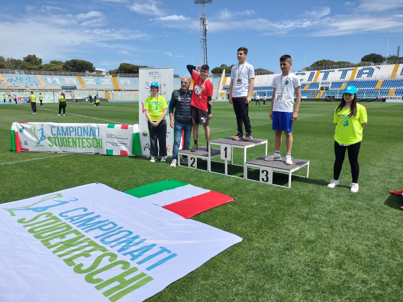 Nella categoria ragazze un terzo posto nel salto in lungo femminile con l’alunna Giulia Fanaro del plesso di Roccaspinalveti, nella categoria cadette un terzo posto negli 80 mt HS (Ostacoli) l’alunna Federica Donatelli del plesso di Palmoli, un terzo posto nella staffetta 4×100 nella categoria cadetti composta dagli alunni Pietro D’Aloisio e Marco Di Ninni del plesso di Palmoli, l’alunno Giuseppe Filippone del plesso di Celenza sul Trigno e l’alunno Emiliano Di Francesco del plesso di Castiglione Messer Marino.