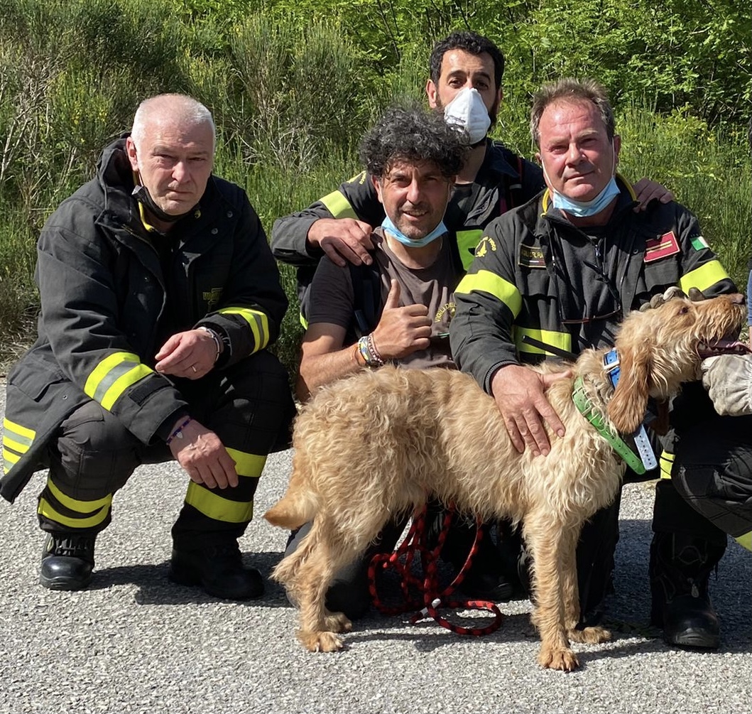 pressi di Monte Patalecchia. I Vigili del fuoco, dopo aver individuato il cane, con tecniche speleo alpino fluviali si sono calati fino ad arrivare all’animale, recuperandolo e consegnandolo ai legittimi proprietari.