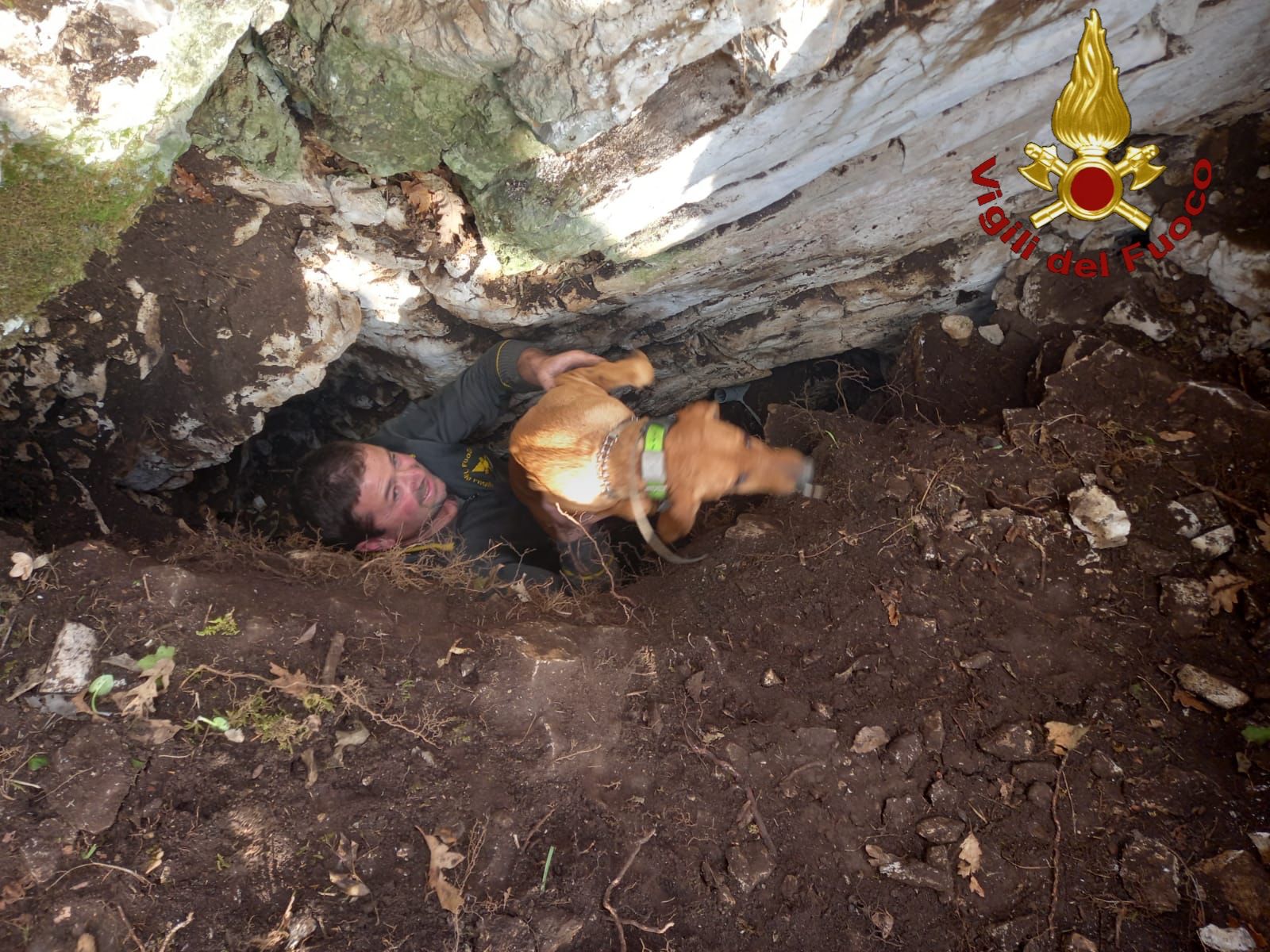Localizzati i segugi, alcuni Vigili del Fuoco hanno provveduto a allargare il passaggio per poter raggiungere i cani rimasti bloccati all’interno. Dopo circa tre ore di intenso lavoro da parte dei Vigili del fuoco, in condizioni non propriamente agevoli, i cani da caccia sono stati raggiunti, liberati, e consegnati, sani e salvi, ai legittimi proprietari.