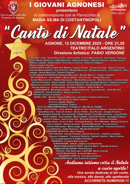 Il risultato è un evento che va ben oltre il tradizionale spettacolo natalizio. È un laboratorio di comunità che riscopre il potere della collaborazione e del talento condiviso. C’è chi canta, chi suona, chi recita, chi si occupa della scenografia o della parte tecnica: ognuno porta un pezzo di sé, e tutti insieme raccontano la stessa storia – quella di una città viva, capace di rigenerarsi attraverso l’energia dei propri giovani. Il “Canto di Natale” diventa così un simbolo, una fotografia dell’Agnone di oggi. Una città dove le associazioni collaborano, dove le parrocchie dialogano con i gruppi giovanili, dove la cultura non è confinata agli eventi istituzionali ma torna a essere strumento di incontro e crescita. È la prova che la fiducia data ai ragazzi non è mai un investimento a perdere, ma un seme che porta frutti. L’appuntamento è per venerdì 12 dicembre. Presenterà la serata Loredana Marcovecchio.
