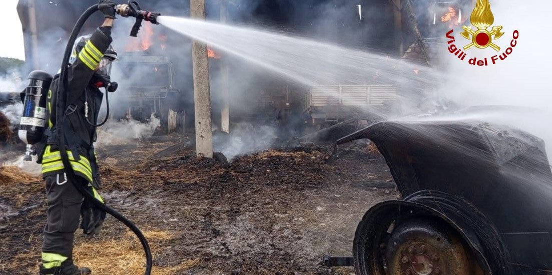 Il rogo ha interessato un capannone agricolo di circa 120 metri quadrati, al cui interno erano stoccate circa 120 rotoballe di fieno e paglia, oltre a due trattori e varie attrezzature agricole compromesse dal rogo. L’intervento del personale operativo è valso a contenere e circoscrivere l’incendio, impedendo la propagazione delle fiamme ai casolari adiacenti, limitando così danni maggiori a strutture e beni circostanti.